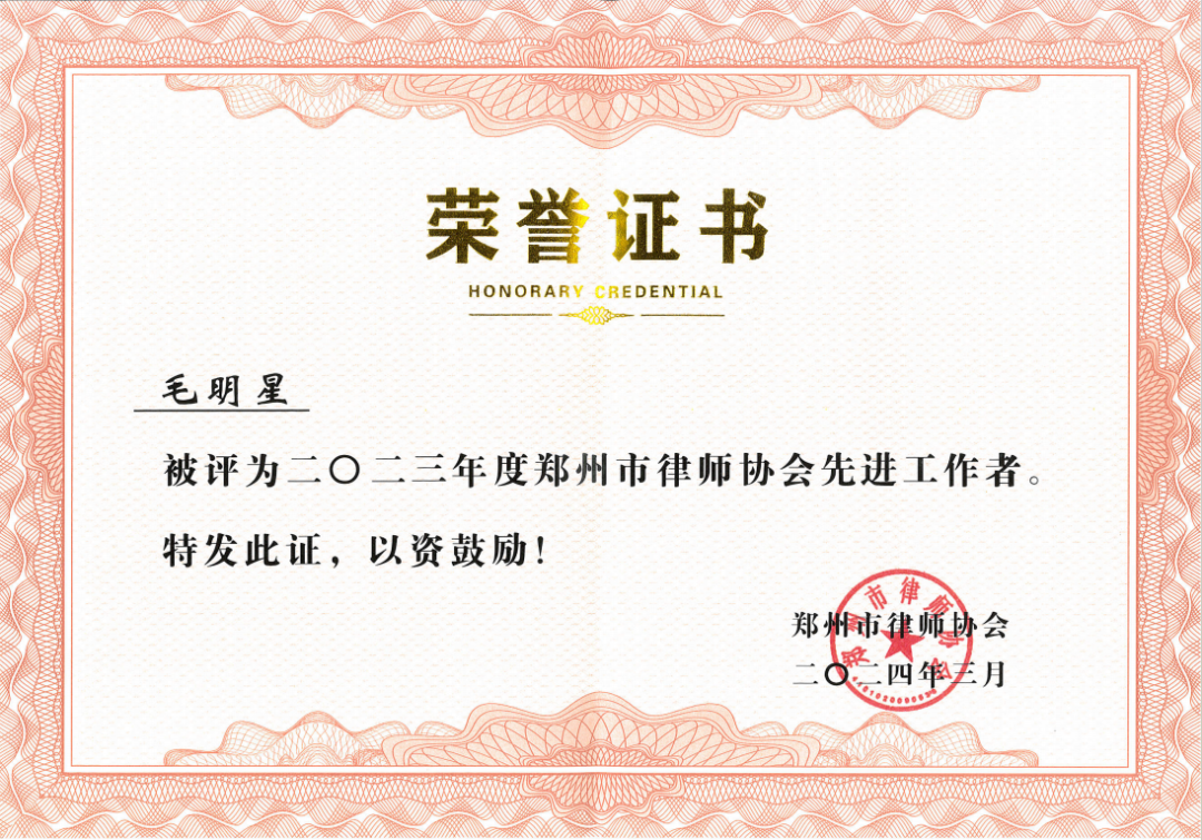 祝賀河南修謹律師事務所主任毛明星、執行主任范建鋒榮獲2023年度...